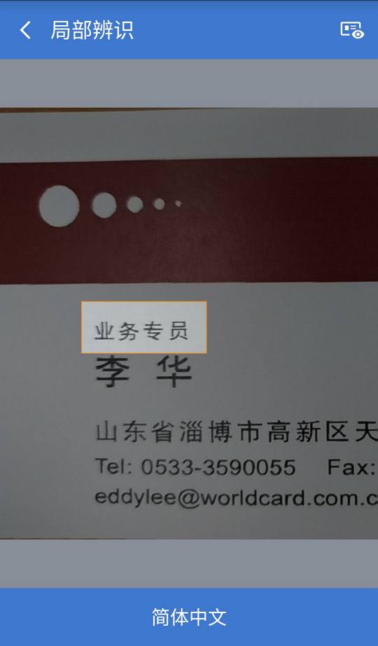 来进行辨识。如果您需要拍摄此张名片的背面,请点选
