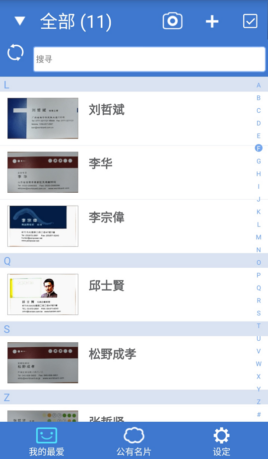 拍摄完成后,您可以在[我的最爱]找到新增的联系人数据。