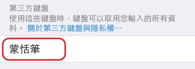 - 在 [第三方鍵盤] 中找到並選擇 [蒙恬筆] 後即可啟用。