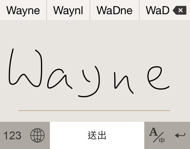 來切換到英文書寫,在此模式下所有的筆跡都會被辨識成英文字,再點一次