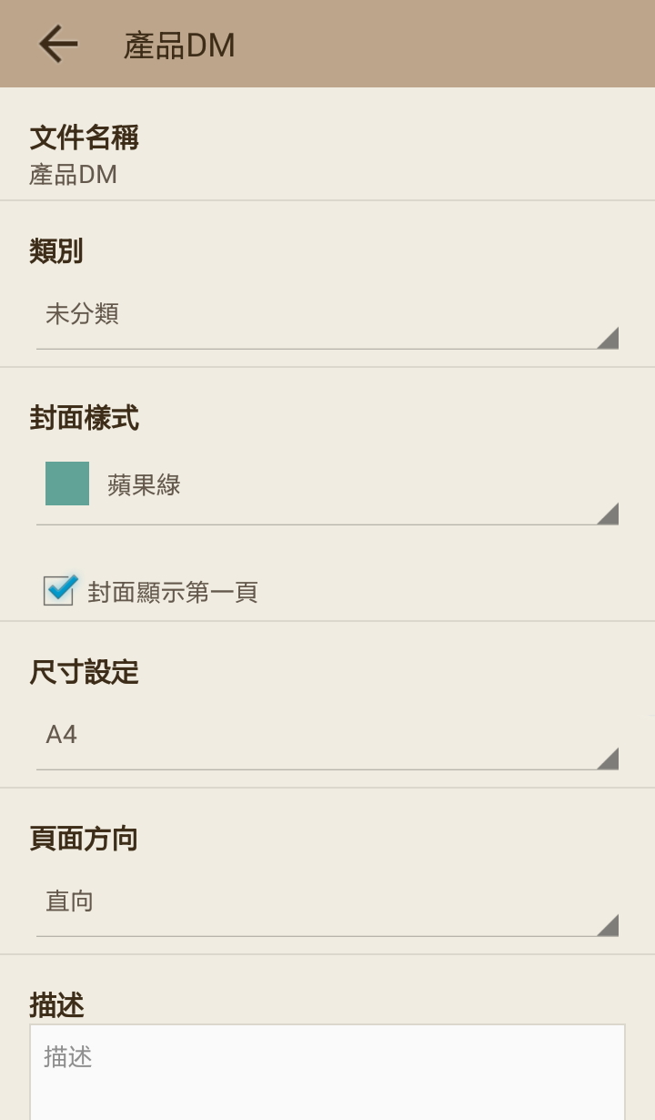 在這邊您可以變更文件夾的名稱、類別、封面樣式等設定,還可設定要Google雲端列印的尺寸,並可建立關鍵字以利搜尋。設定完畢後按返回即會自動儲存變更。
