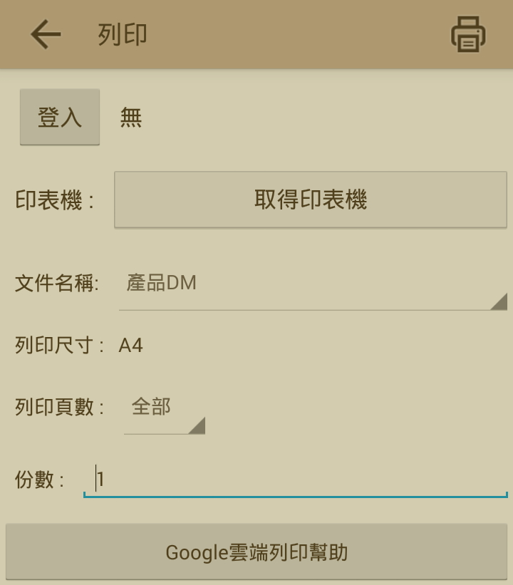 來開啟列印設定,接著請先登入Google帳號,選擇要使用的印表機,並確認要列印的份數、色彩等等,即可開始列印。