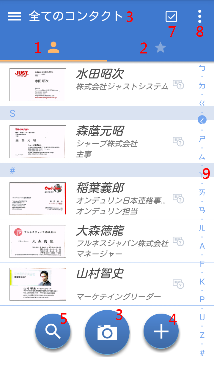 連続撮影/複数枚名刺読み込みで追加した連絡先は、データの上に