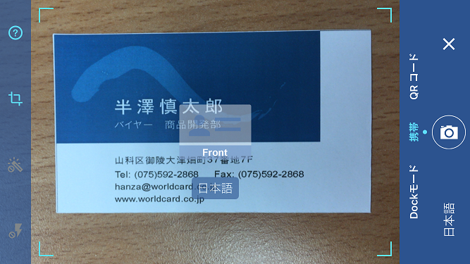 ドックモードで名刺撮影する
