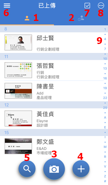 即開始進行名片辨識,辨識完後即可在未上傳區的聯絡人列表中看到。