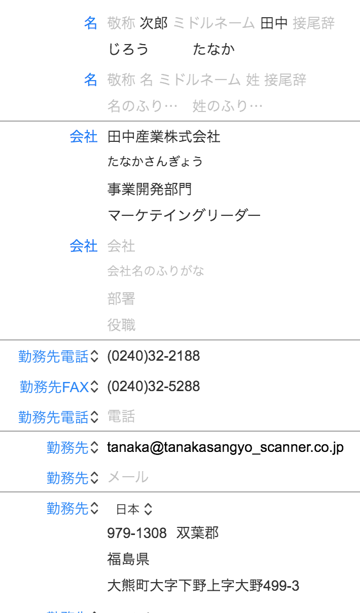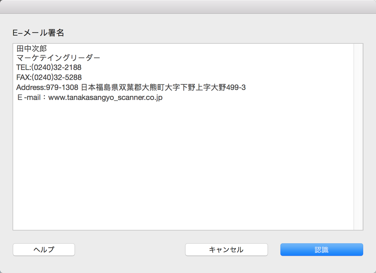 1. うまく認識するため、各フィールドの区切りを確認してください。例えば「名前」と「会社名」を二行に分けること。