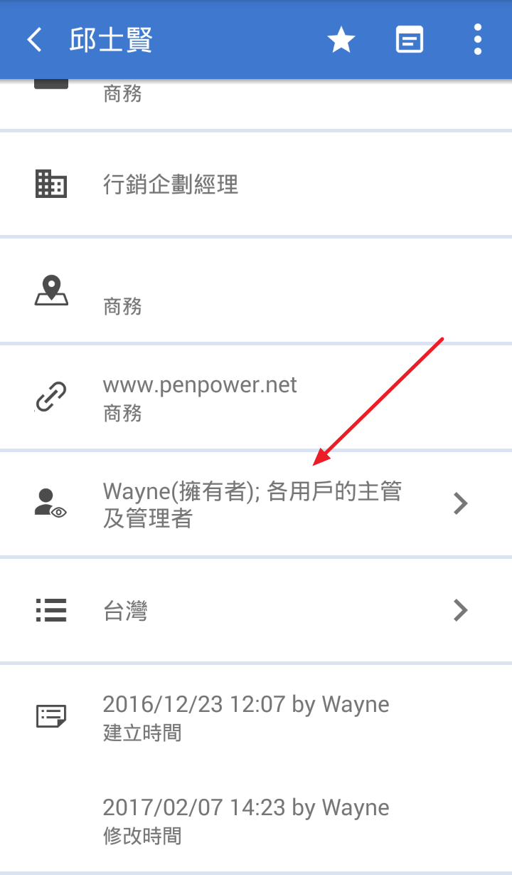 將聯絡人再分享給別人,而被分享人的主管也將能看到這筆資料。