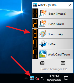 Open BM (Button Manager) again, left-click the "Scan To App" item, and the scan