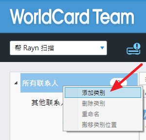 图示,再选择﹝帮同事扫描名片﹞,并选择要帮忙扫描的同事,且选定要帮忙扫瞄到哪个类别下,再按右上角的